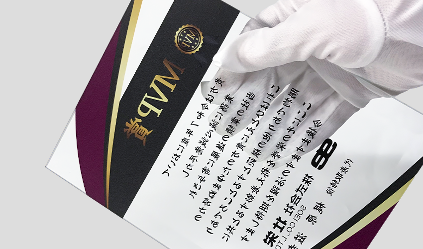 オリジナルのクリスタル表彰楯を制作させていただきました。サイズ170×230mm、UVカラー印刷で制作しています。