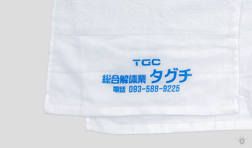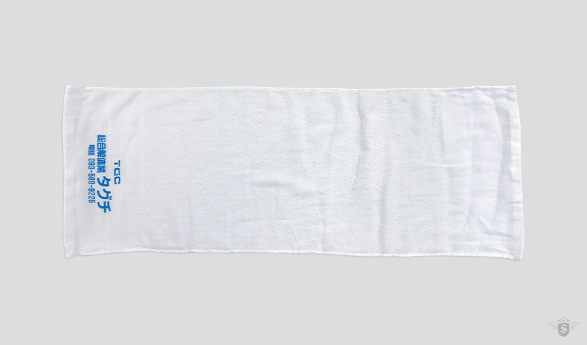 オリジナルの今治タオルを制作させていただきました。タオル表面のパイル(ループ状の糸)を平らにカットしたシャーリング生地になっています。シャーリングは印刷に最適な生地です。