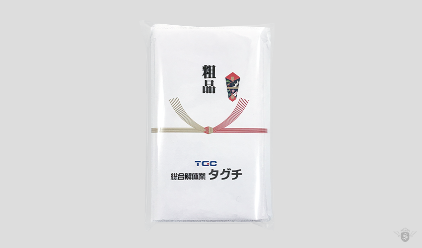 オリジナルの粗品タオルを制作させていただきました。熨斗付きPP袋入りです。