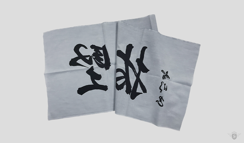 オリジナルの面タオルを制作させていただきました。岡生地・エンジ色に白抜き文字の手捺染・切りっぱなし仕様で制作しています。