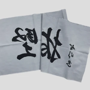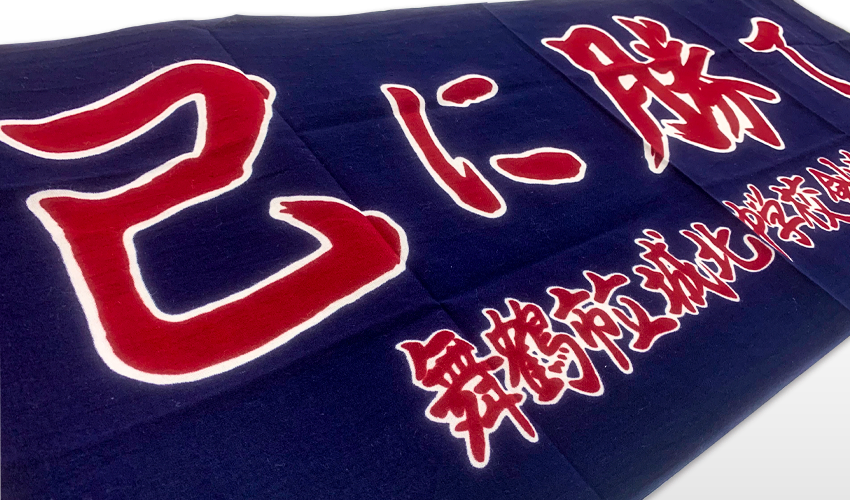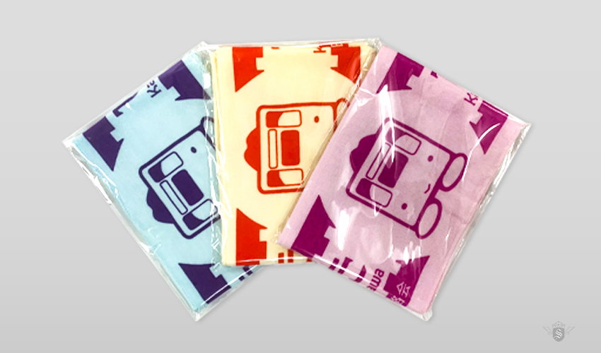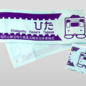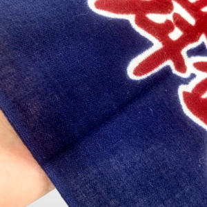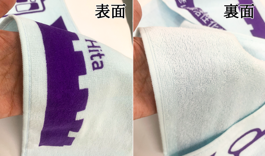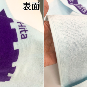 オリジナルの今治タオルを制作させていただきました。タオル表面のパイル(ループ状の糸)を平らにカットしたシャーリング生地になっています。シャーリングは印刷に最適な生地です。
