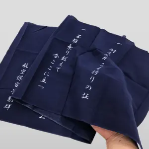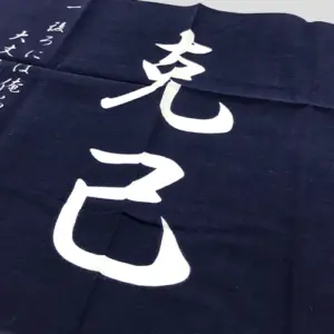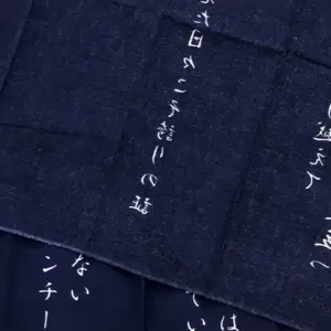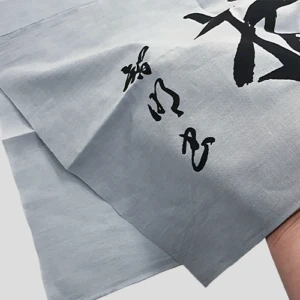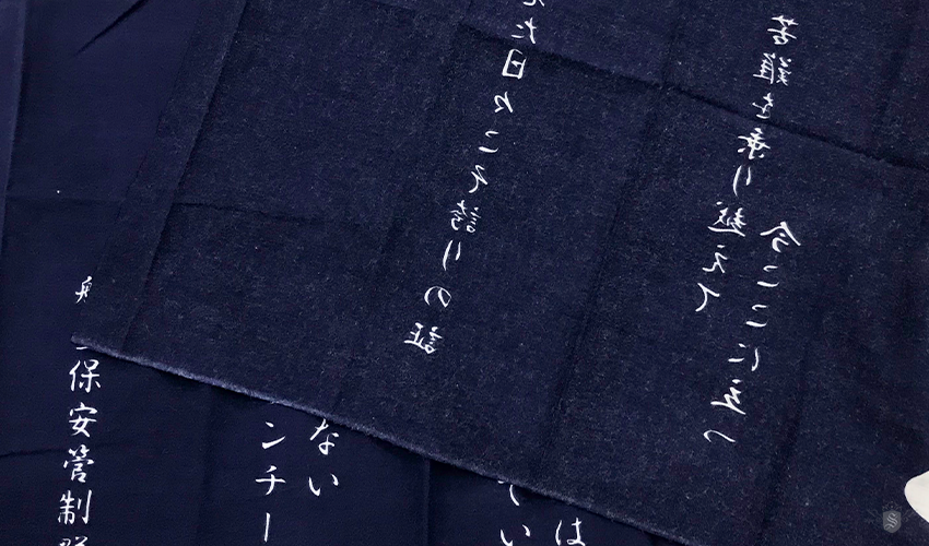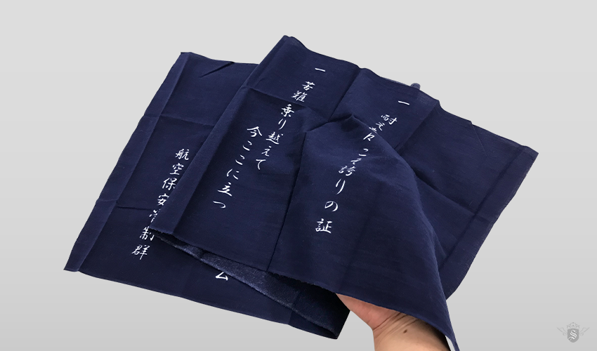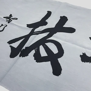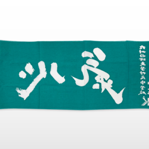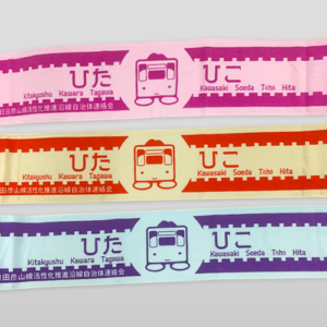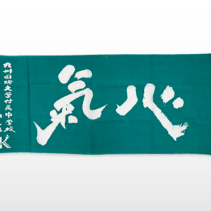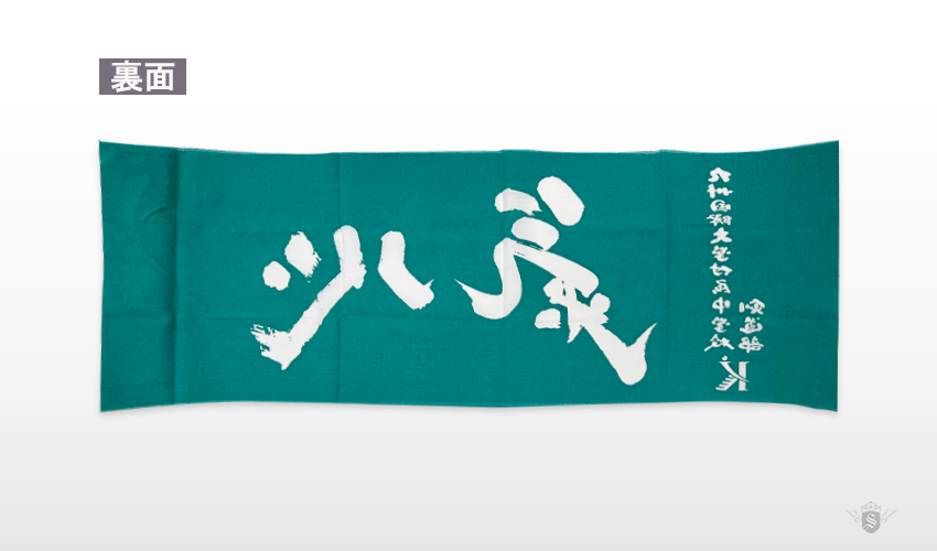 オリジナルの面タオルを制作させていただきました。岡生地に顔料を使い白抜きで染めています。
