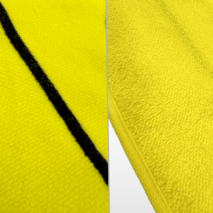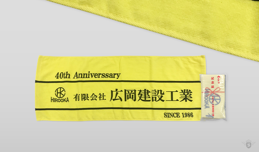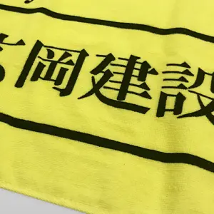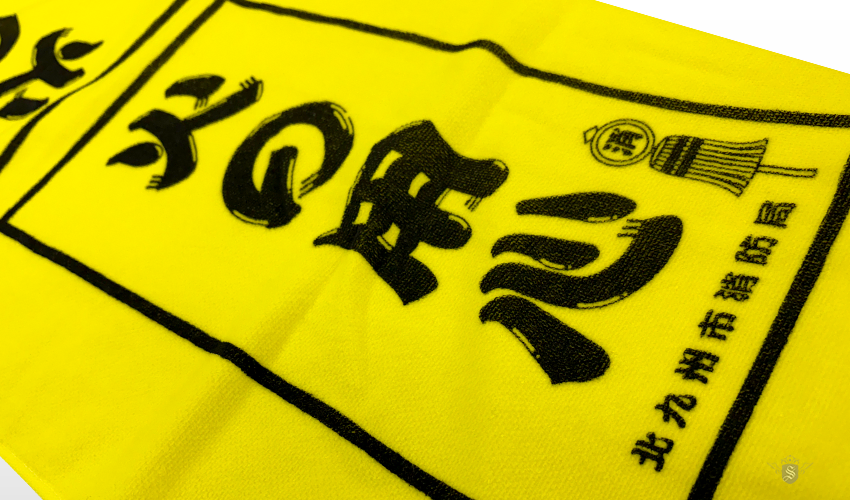 オリジナルタオルを制作させていただきました。シャーリング生地でイエローベースのタオルに黒1色での印刷です。