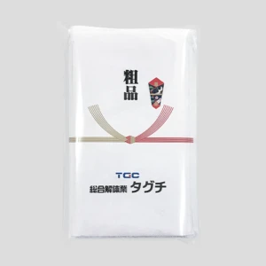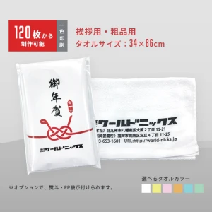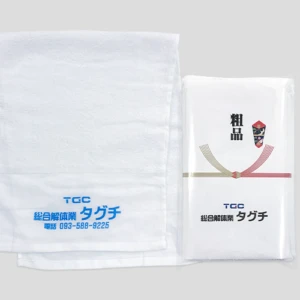 オリジナルの粗品タオルを制作させていただきました。熨斗付きPP袋入りです。