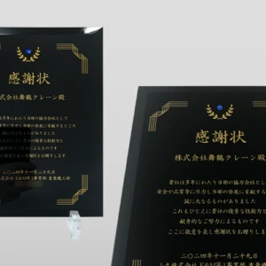 美しいガラス表彰盾を制作しました。ラインストーンもオプションでつけています。