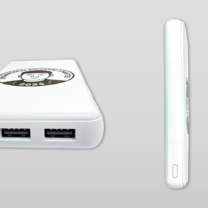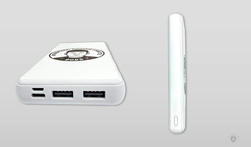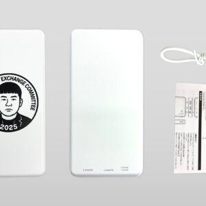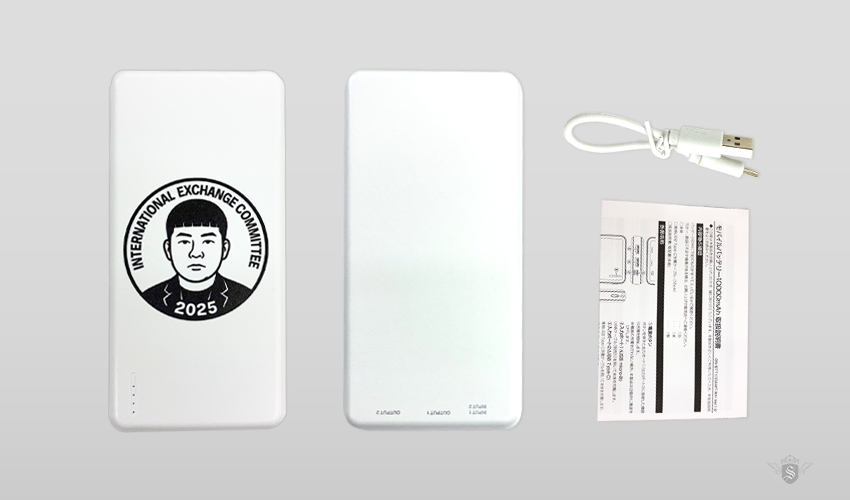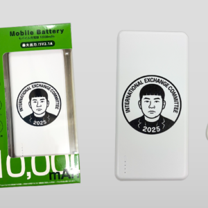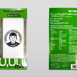 オリジナルのモバイルバッテリーを制作させていただきました。10000mAhの大容量、片面1色印刷で制作しています。