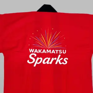 八幡西区マスコットキャラクターの「官兵衛タン」を背中にプリントした、オリジナルのTシャツ・ポロシャツを制作させていただきました。