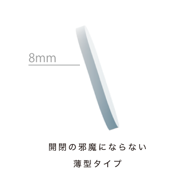 開閉の邪魔にならない厚み8mmの薄型タイプです。