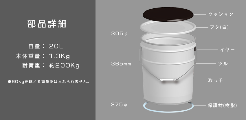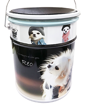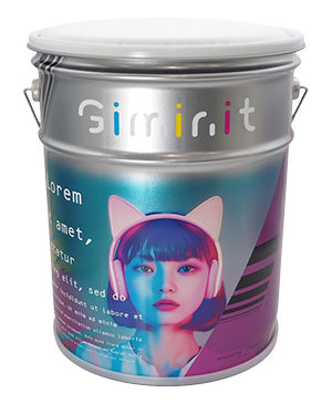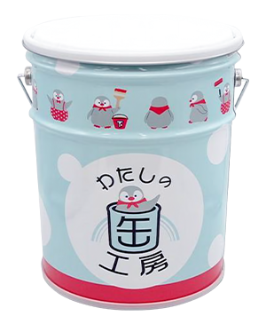 1缶からオリジナルでデザインを印刷できる「スチール製ペール缶」です。フタの上に柔らかいクッションを採用したことで、椅子としても使用できる大型の缶容器になっています。