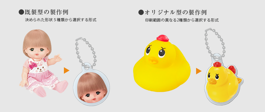 チャームにボールペンが対応している場合は、オリジナルのチャームが取り付けられます。5つの既製型またはオリジナル型から選んで製作できます。