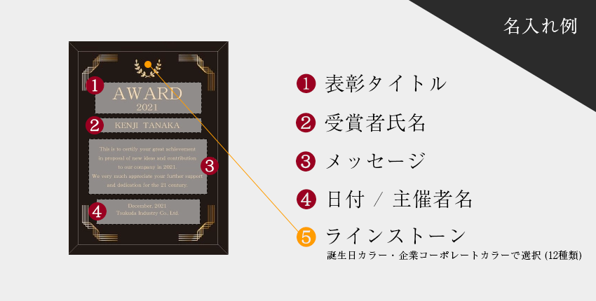 お名前・組織名・年月日など、彫刻する内容は、お間違いのないよう必ずご確認ください。