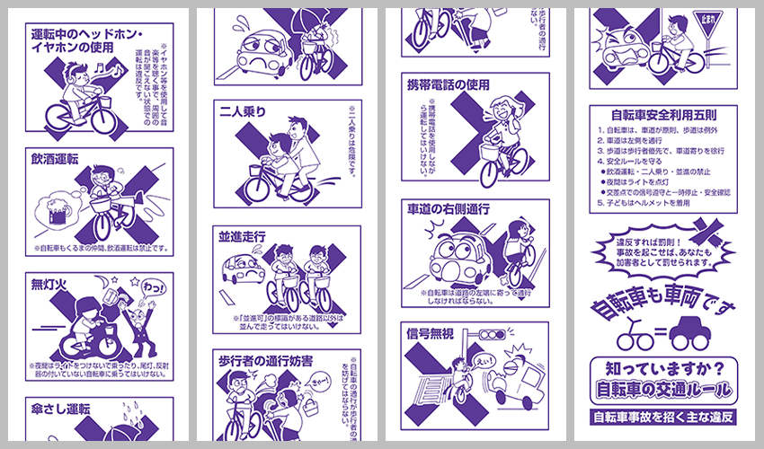 自転車の交通ルールを学べる啓発用トイレットペーパーです。自転車も車両、特定の「危険行為」を過去3年以内に2回以上繰り返すと「自転車運転者講習受講」が命じられます。特に学生や高齢者の方の啓蒙用にお勧めです。